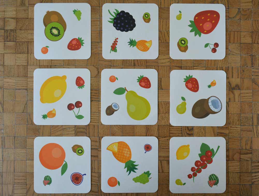 These cards feature four fruits of different sizes. For people with impaired vision, autism or aphasia, this version of the matching game offers clarity and simplicity.