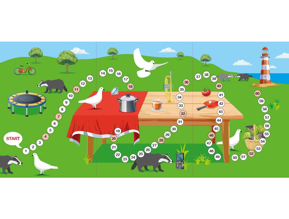 These dice games are designed for children with sound discrimination difficulties to practise in a playful way. In the board game, the children navigate an obstacle course with animals and have to complete fun sound and word exercises on event spaces. Almost all of the objects on the playing field contain the letters to be practised, allowing them to be practised in a playful way. The actual goal of winning is not forgotten.
